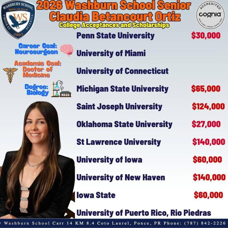 Carlos Felipe García Luna, Senior at Washburn School in Ponce, Puerto Rico Receives $1.2 Million in University Scholarships, Including a Full-Ride Covering Tuition, Housing, and Meals for One of the Most Selective Universities United States