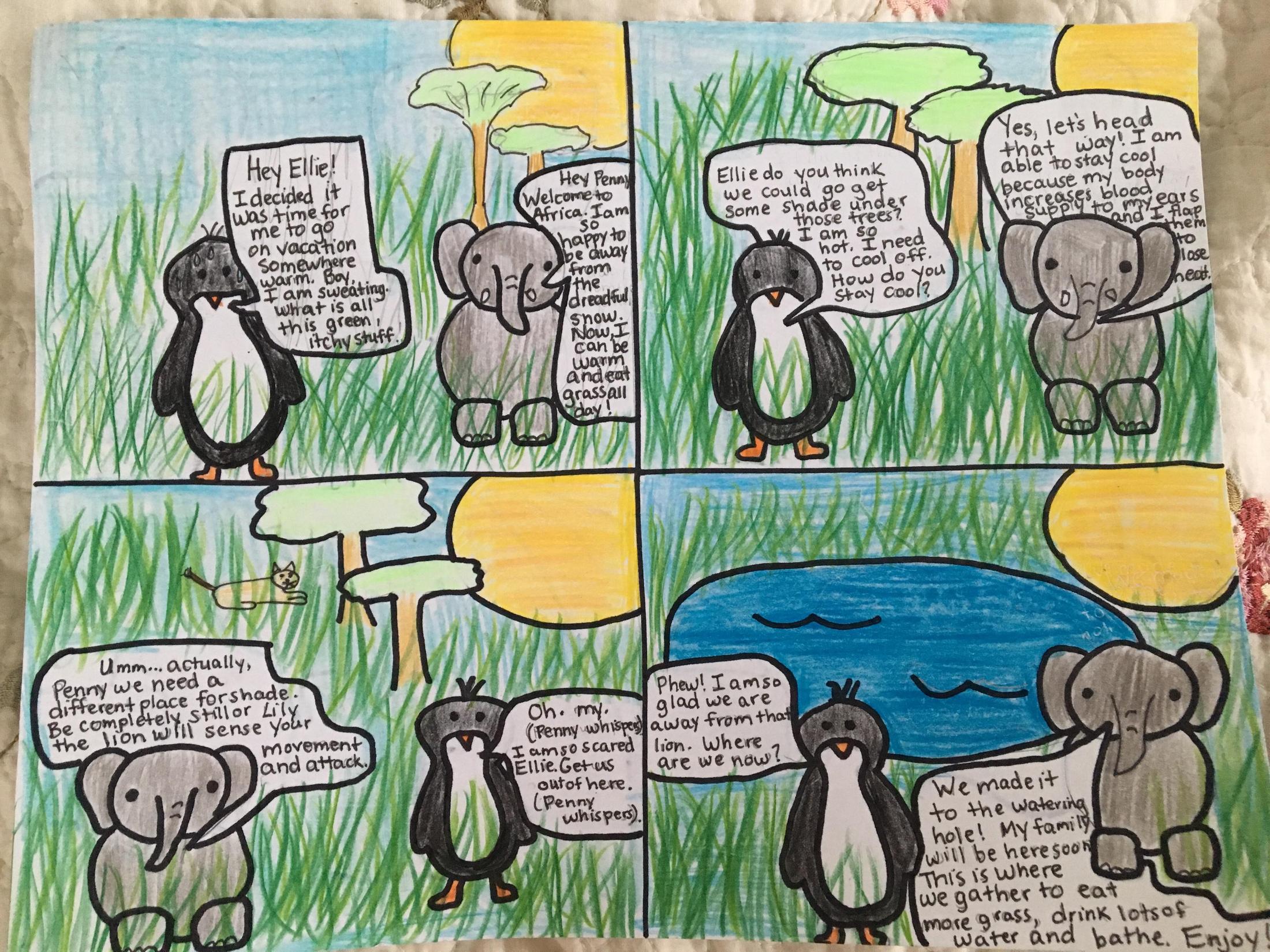 This morning, I showed my example of the comic to the class again. The students that did not finish their handout yesterday, worked on that. Students that finished, worked on their animals research and comic project. I will upload the rubric and my examples in additional posts. This project is due December 7th. We will work on it in class on Monday, November 26th. This project IS NOT expected to be done over Thanksgiving break. They will have two weeks after the break to complete it.