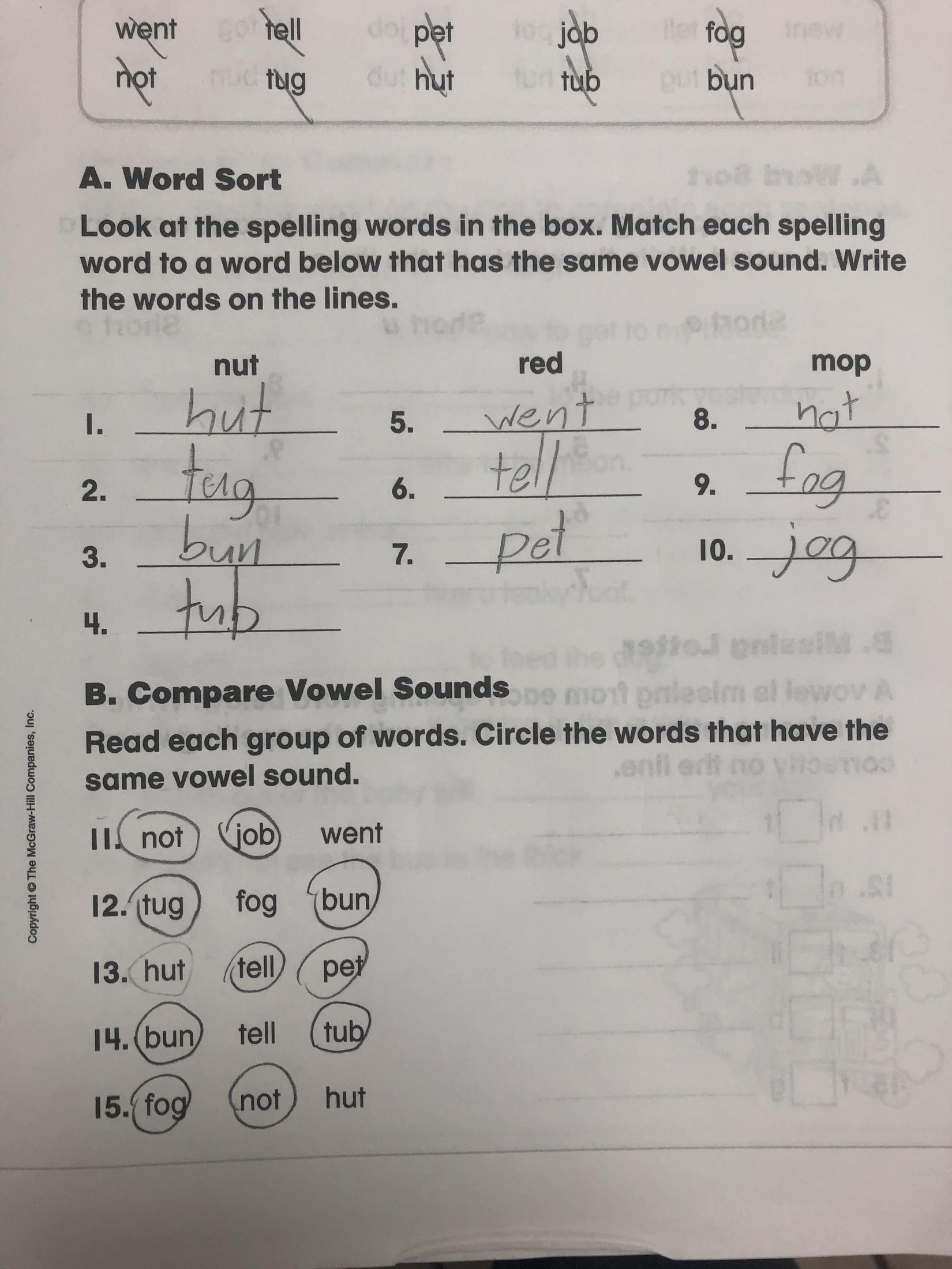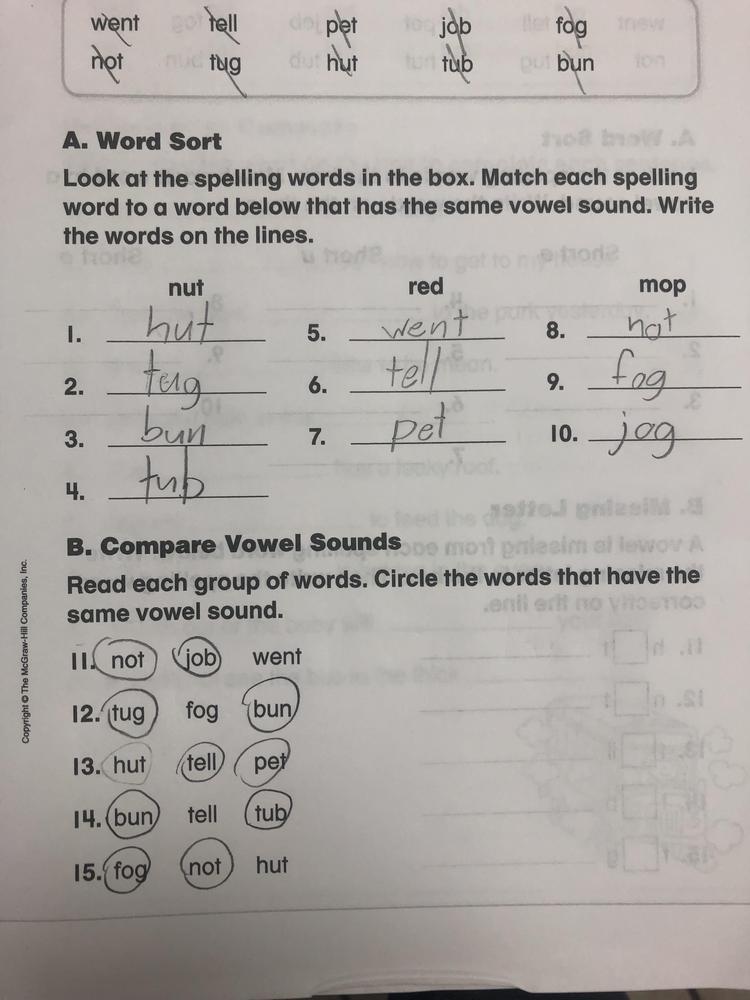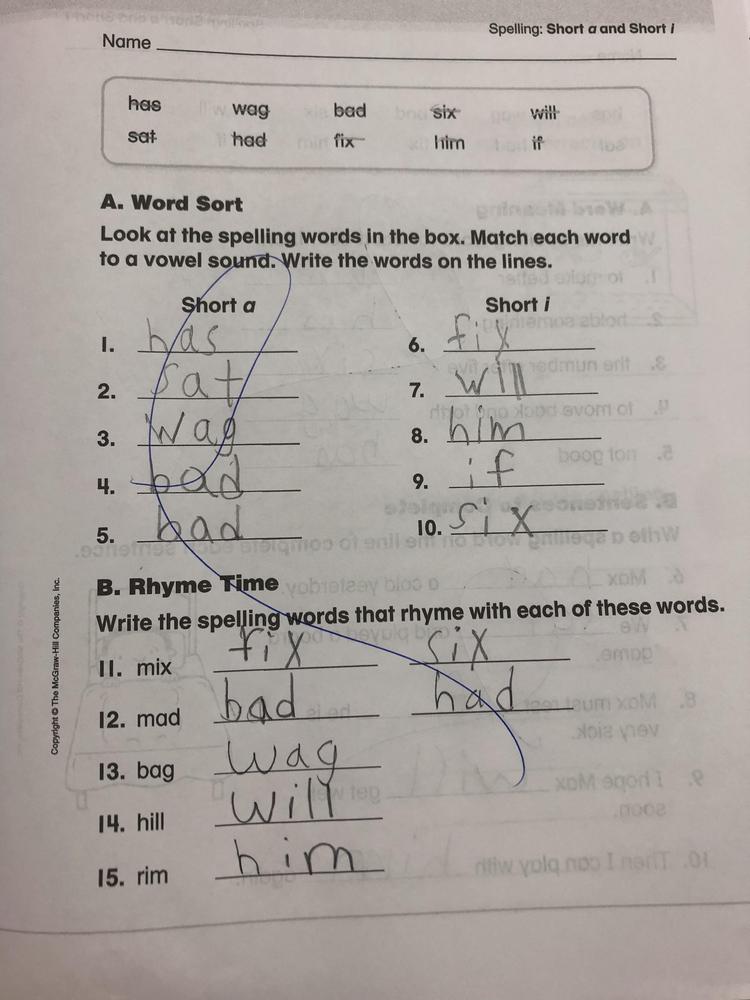 Page three (3) from the Spelling-Phonics Workbook done today in the classroom.
