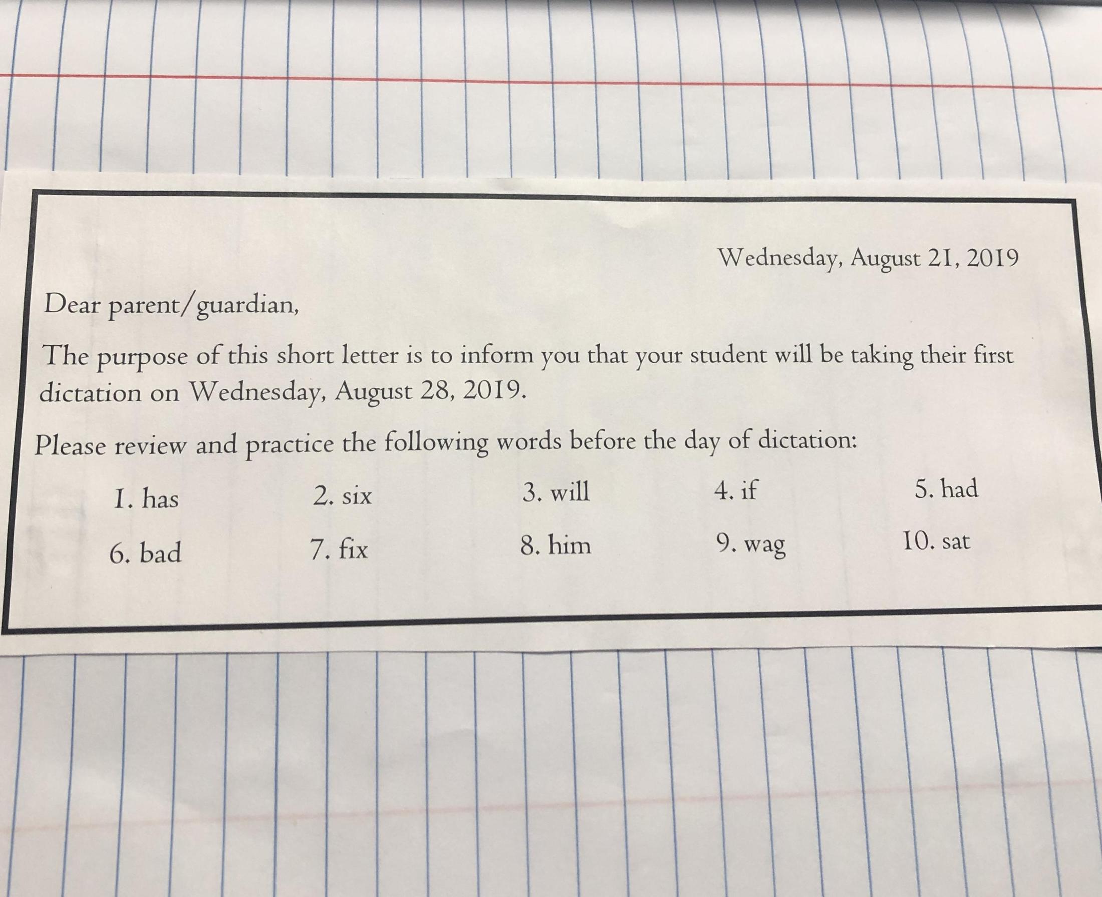Please review and practice the words before dictation day.
