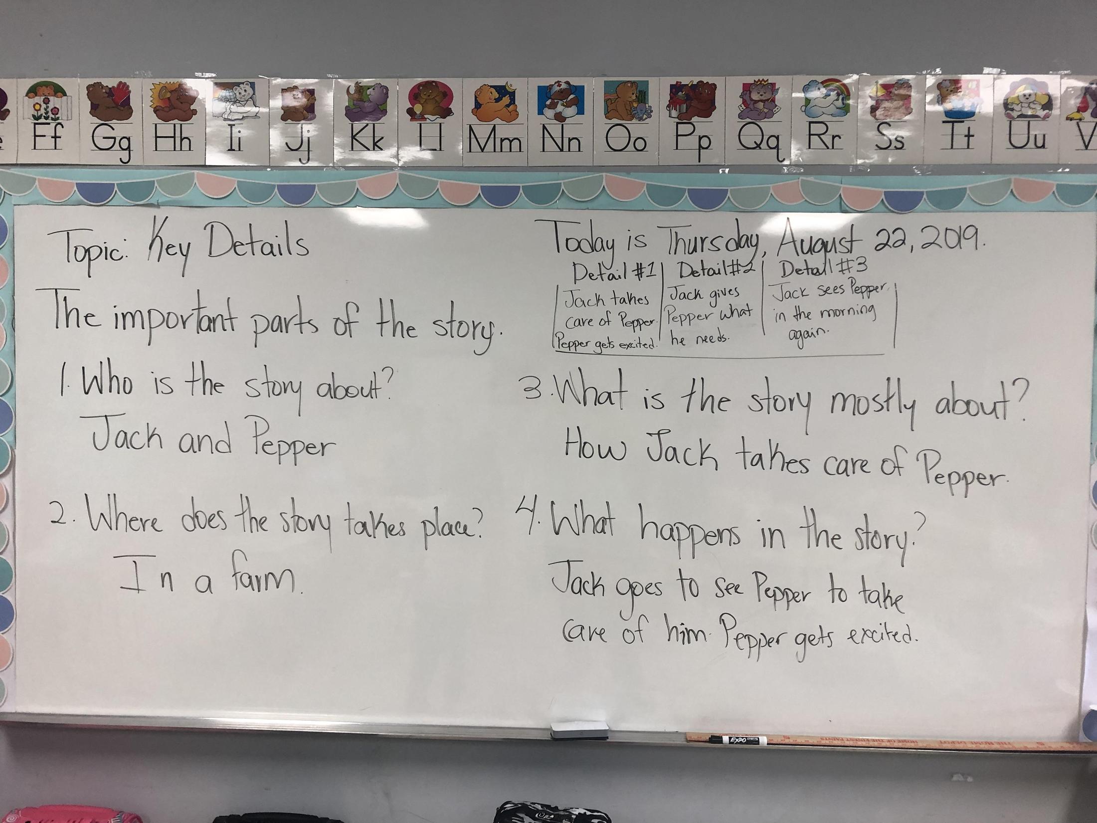 Today we read "Taking Care of Pepper" and found the key details of the story.