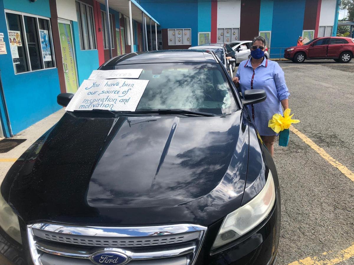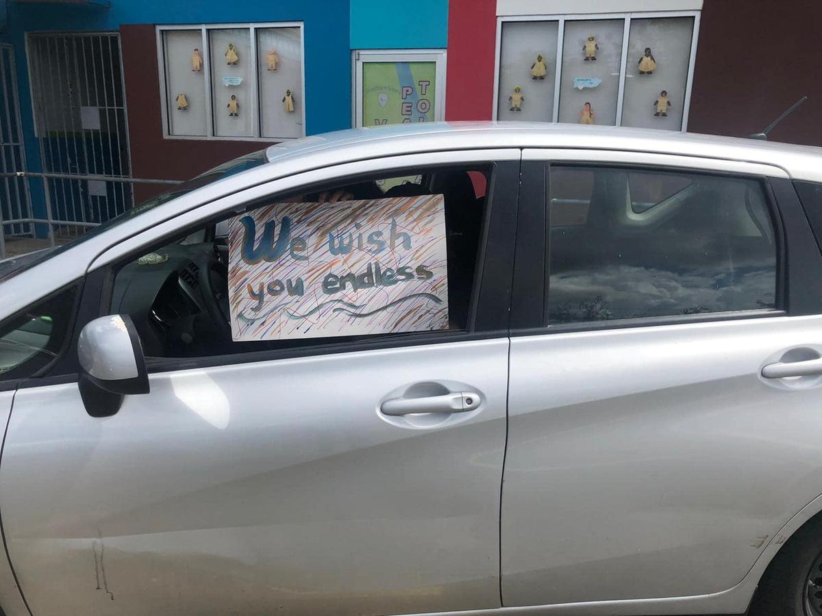 Our teachers and faculty orchestrated two surprises for him via online video meetings and in a teacher caravan with a beautiful message for him!