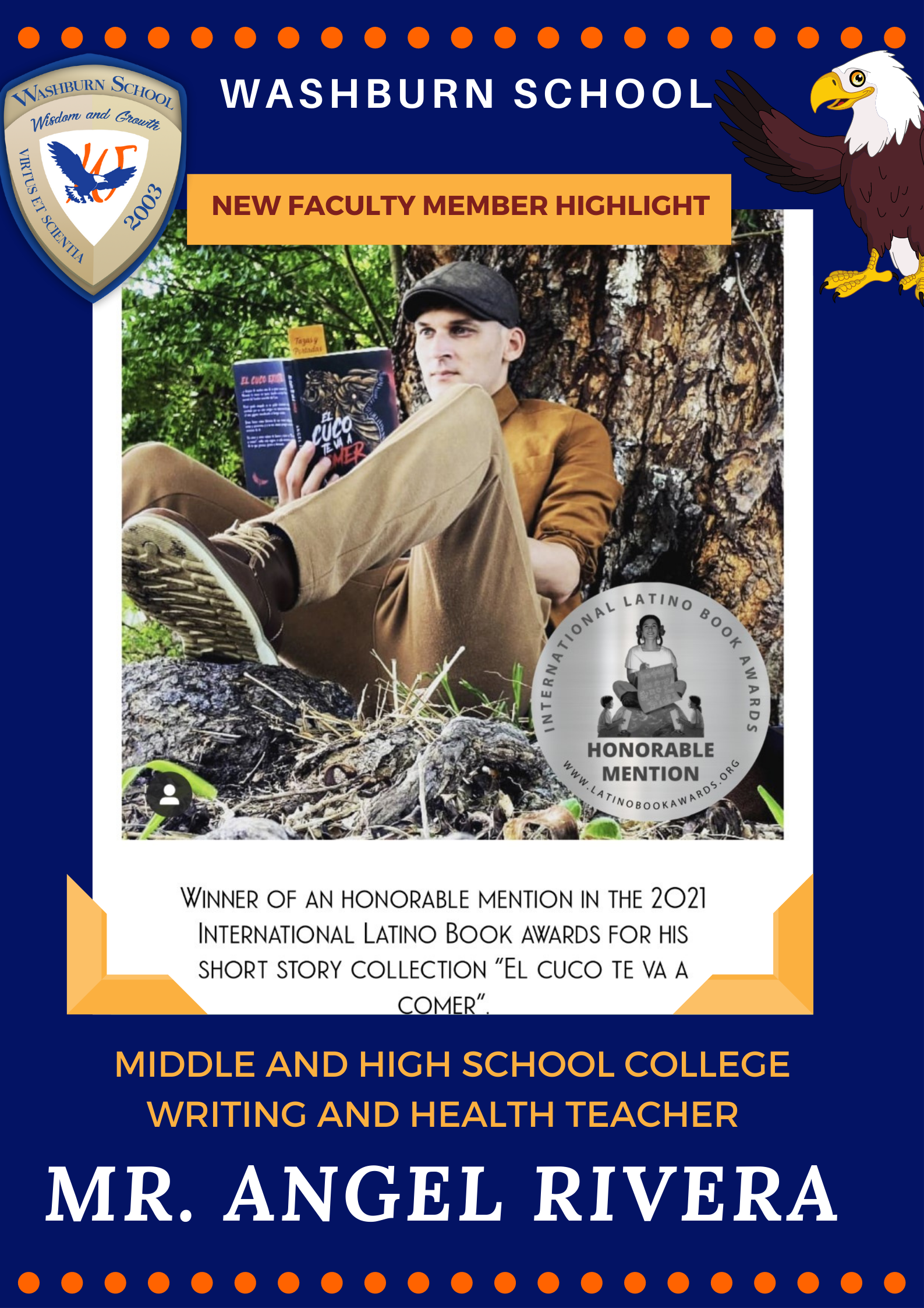 Washburn School will like to congratulate Mr. Angel Rivera for his recent book nomination in the International Latino Book Awards, where he received honorable mention for his recent book.
