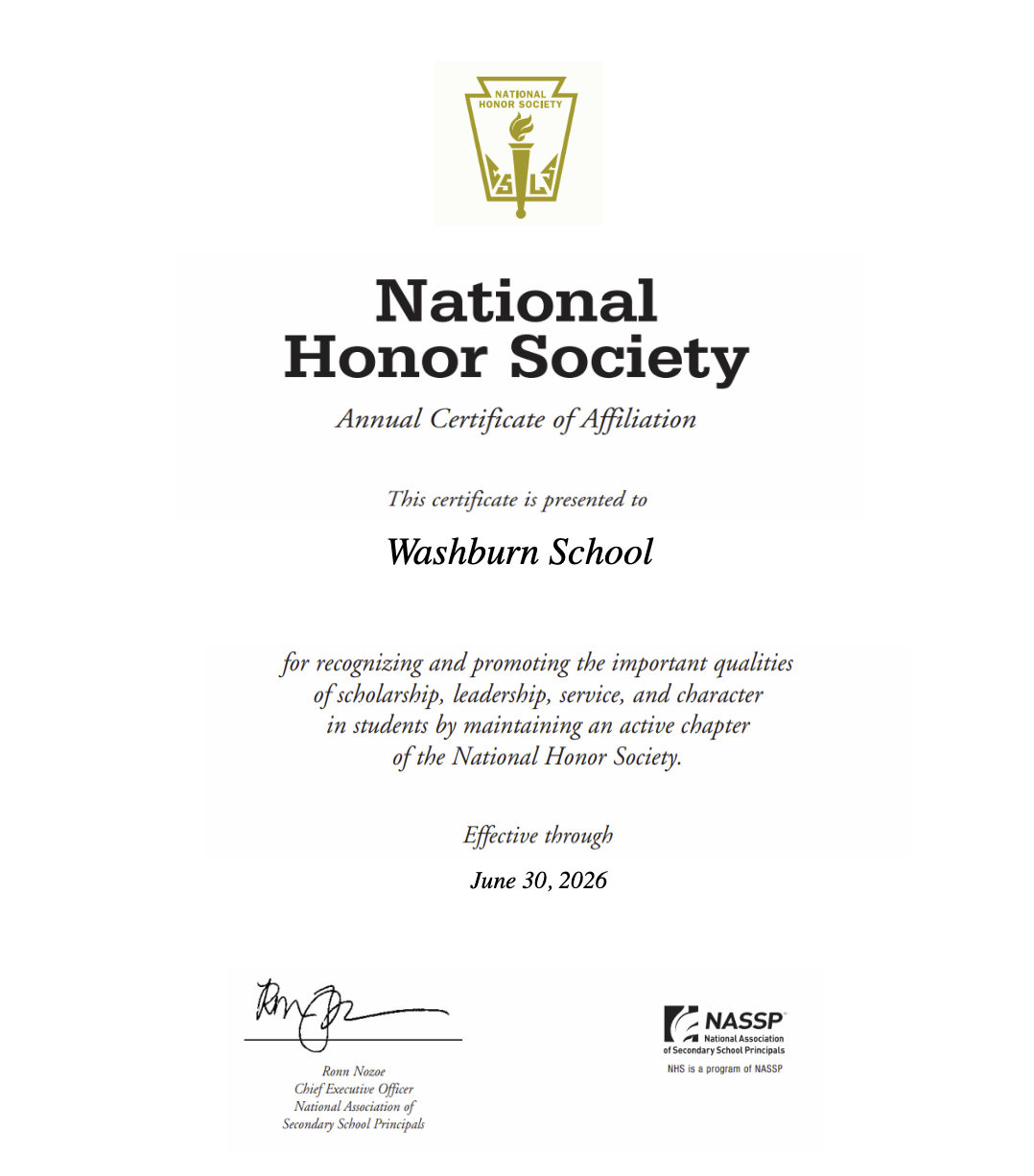 Washburn School proudly announces its 22nd consecutive year of official affiliation with the National Honor Society (NHS), a distinction that will remain in effect through June 30, 2026. This continuous recognition affirms over two decades of unwavering commitment to cultivating the core values of scholarship, leadership, service, and character in our students.